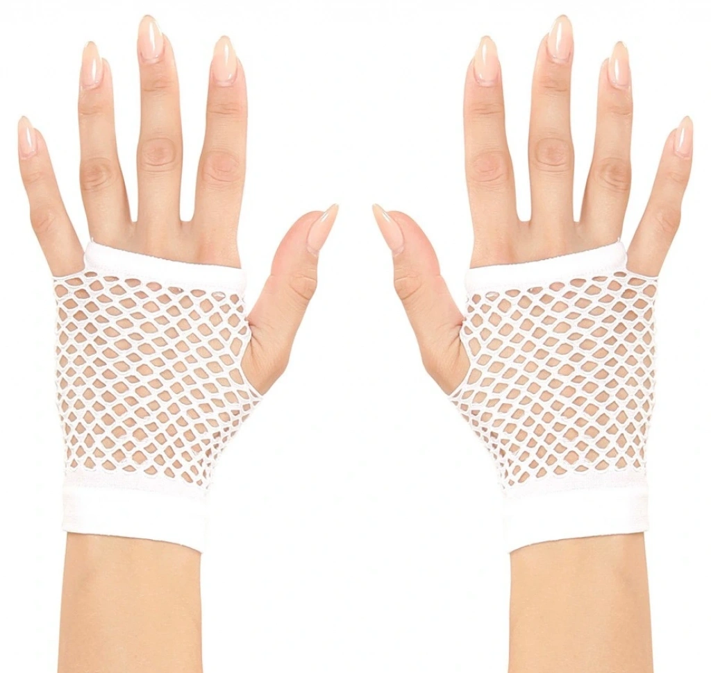 Karnaval ve cadılar bayramı kostümünüze orijinal bir dokunuş katacak kısa beyaz örgü eldivenler | Görünümünüzü bu 11 cm beyaz örgü eldivenlerle tamamlayın