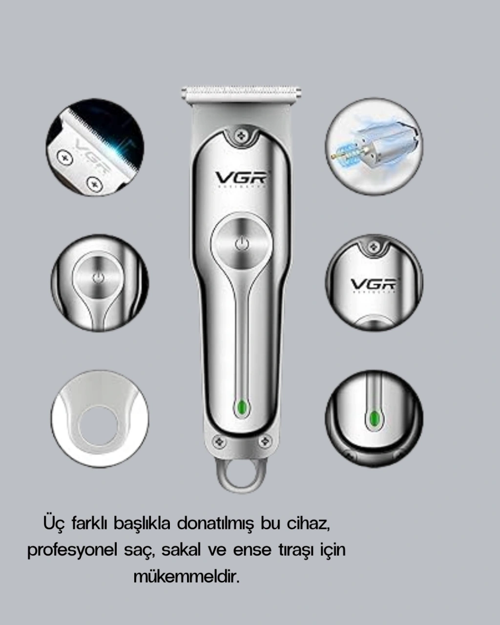 Şarjlı Gümüş Tıraş Makinesi – 3 Farklı Başlıklı, 120 Dakika Çalışma Süreli, Cilt Dostu Erkek Bakım Cihazı